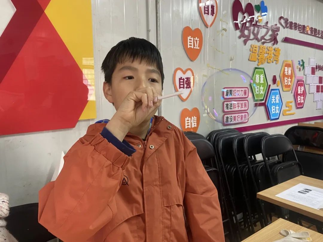 在拓展实验环节,苏慧岚同志让大家思考可以让泡泡变得更加坚固耐破的方法。同学们开拓脑筋、积极思考,提出了在水中加入胶水可以让泡泡变得不易破碎。苏慧岚同志也鼓励同学们在课后进行尝试,继续探究其中的奥秘。