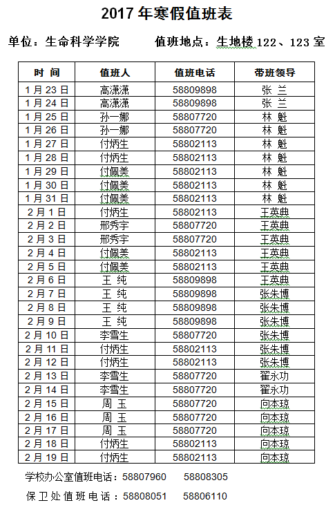 【通知】学院2017年寒假值班表