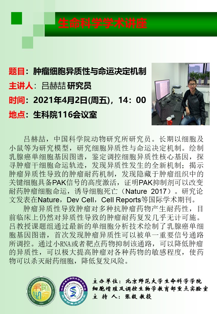 【讲座】肿瘤细胞异质性与命运决定机制