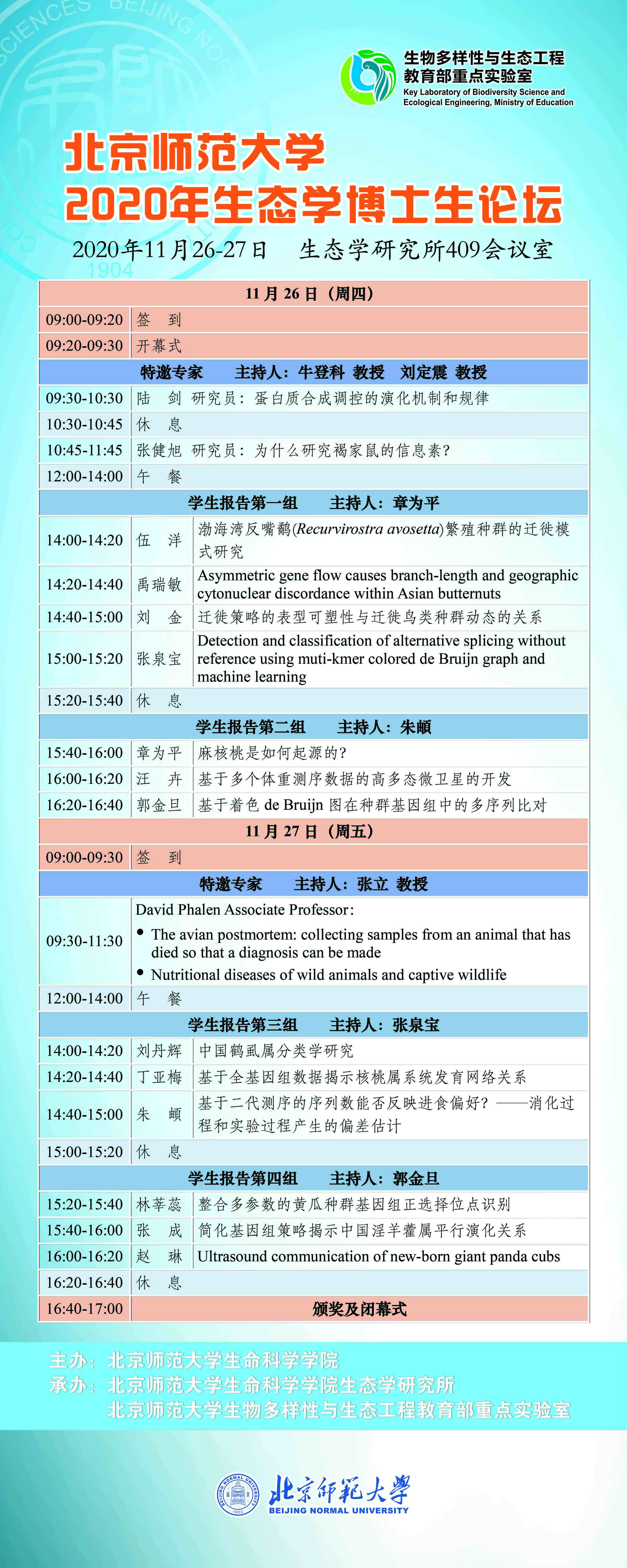 【论坛】2020年Betway体育西汉姆联生态学博士生论坛日程