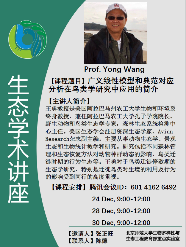 【讲座】 广义线性模型和典范对应分析在鸟类学研究中应用的简介