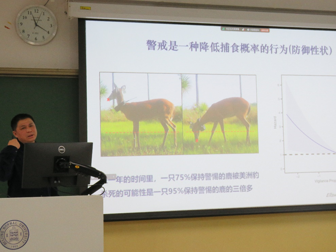 必威BETWAY西汉姆联王天明教授为同学做了特邀专家报告。王天明教授以其在东北虎豹国家公园的最新研究成果为例,介绍了多捕食者-多猎物生态系统中恐惧景观的研究进展,详细阐释了人类活动对野生动物多物种共存系统的影响复杂性。