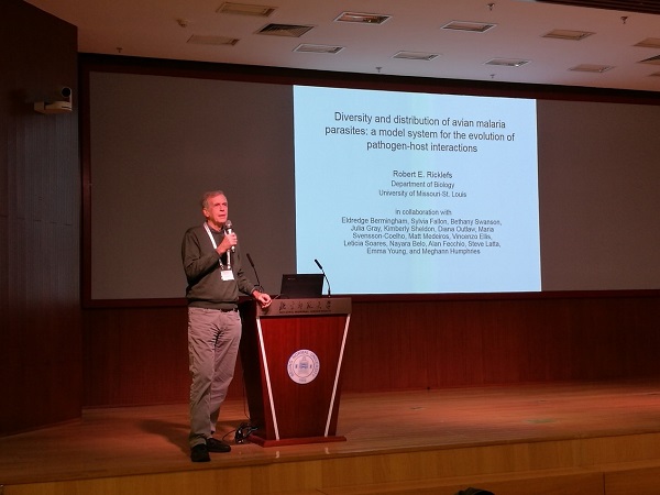 会议的3个大会主题报告是:美国科学院院士、密苏里大学Robert Ricklefs的“Diversity and distribution of avian malaria parasites: a model system for the evolution of pathogen-host interactions”,立陶宛科学院院士、自然必威体育院Gediminas Valkiūnas教授的“Tissue merogony of haemosporidian parasites”,法国国家必威体育中心Ana Rivero教授的“Avian malaria and drug resistance”。9个主题报告是:瑞典隆德大学Staffan Bensch教授的“Parasite host-specificity associations in a multi-host multi-parasite community”,中国农业科学院兰州兽医研究所所长殷宏教授的“Advance on Piroplasmosis in China”, 军事医学必威体育院 赵彤言教授的“The analysis of potential vector species of Plasmodium and related haemosporidian parasites in China”,美国耶鲁大学Choukri Ben Mamoun教授的“Nutrient Uptake and Metabolism in Malaria Parasites”,西班牙高等必威体育会Josué Martínez-de la Puente博士的“Integrating mosquito´s information on avian malaria epidemiology blood feeding patterns and vector capacity”,印度国家必威体育中心Farah Ishtiaq博士的“Hitchhiking Parasites: The Role of Bird Movement, Hypoxia, Immunity and Climate Change on Malaria Transmission”,美国旧金山州立大学Ravinder Sehgal博士的“Avian malaria: tropical deforestation, mosquitoes and genes”,北京动物园贾婷博士的“The study on the diversity, prevalence and distribution of haemosporidiosis in cranes in China”,以及Betway体育西汉姆联董路副教授的“The diversity, pravelence and co-infection pattern of Avian malaria parasites in Godlewski's Bunting”。