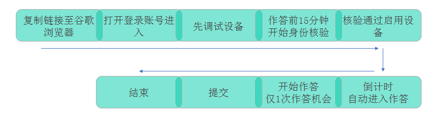 (6)考试流程:正式考试前须完成设备调试,并通过人脸识别的“身份核验”,才可进入考试页面,考试过程中不可切屏到非考试页面否则将被系统判定为违规自动交卷。具体流程说明详见附件2“线上答题手册”。