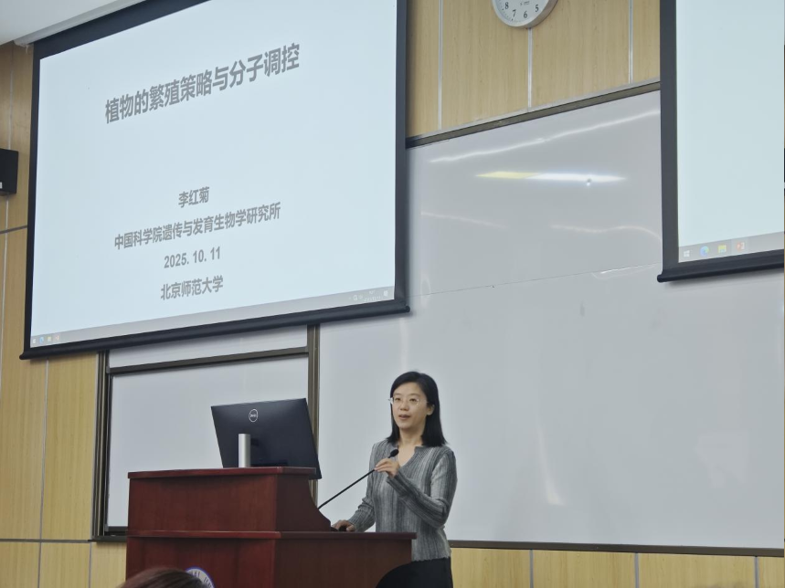 在专家讲座环节,李红菊研究员与大家分享了植物的生殖策略与分子调控相关知识,深入浅出地讲解了植物生殖发育过程中自交和异交的不同策略及面临的繁殖困境。汇报后,同学和老师们积极提问,在倾听学术的同时发现新思想,感悟新观念,令大家受益颇多。
