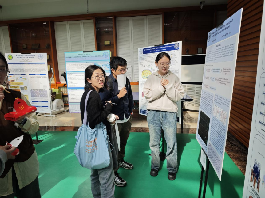 午餐会期间,老师和同学们围绕着17幅制作精美的学术海报积极讨论交流,不少制作者在自己的海报旁向老师和同学们进行详细介绍,探讨科学问题,互相分享和学习在学术研究过程中收获到的经验和心得。