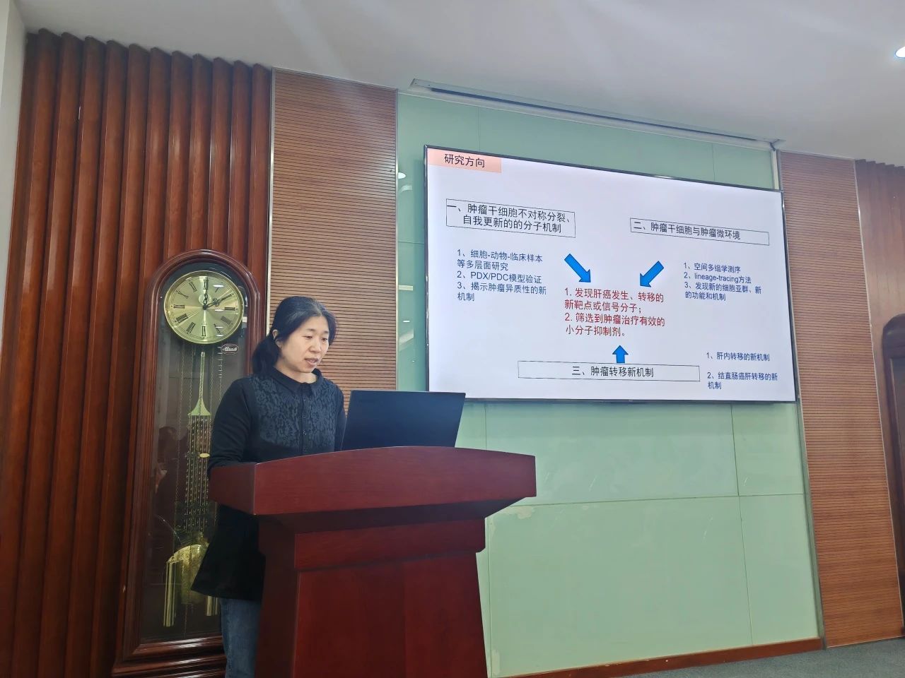 本次讲座的主题是肿瘤干细胞,非编码RNA与肿瘤微环境。王彦英教授介绍了关于肿瘤治疗研究方向、研究背景和代表性研究成果,指出肝细胞癌的一线治疗药物不能有效延长生存期,发现肝癌的发病机制是肝癌治疗的迫切需要。目前,靶向肿瘤干细胞治疗是研究热点。