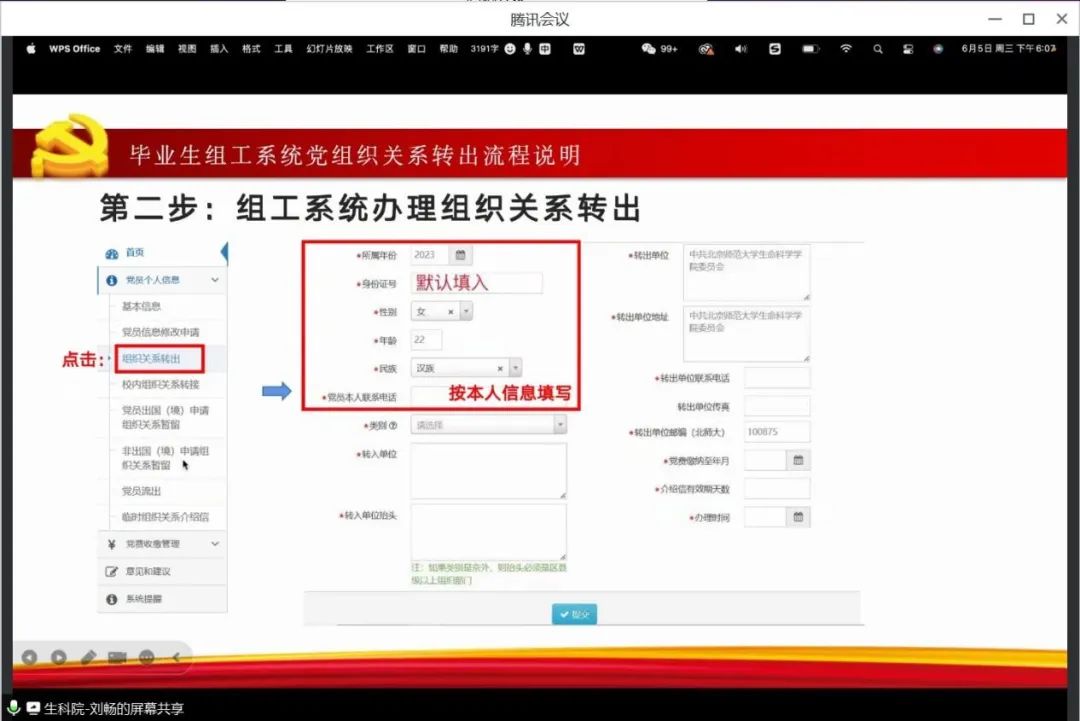 刘畅老师首先强调了党组织关系转出工作的重要性,对于正式党员和预备党员来说,未来党组织的归属与个人发展息息相关。所有毕业生同学应根据自己所处的入党阶段,按照相关要求,准确无误的填写相关信息,完成党组织关系的转出事宜。