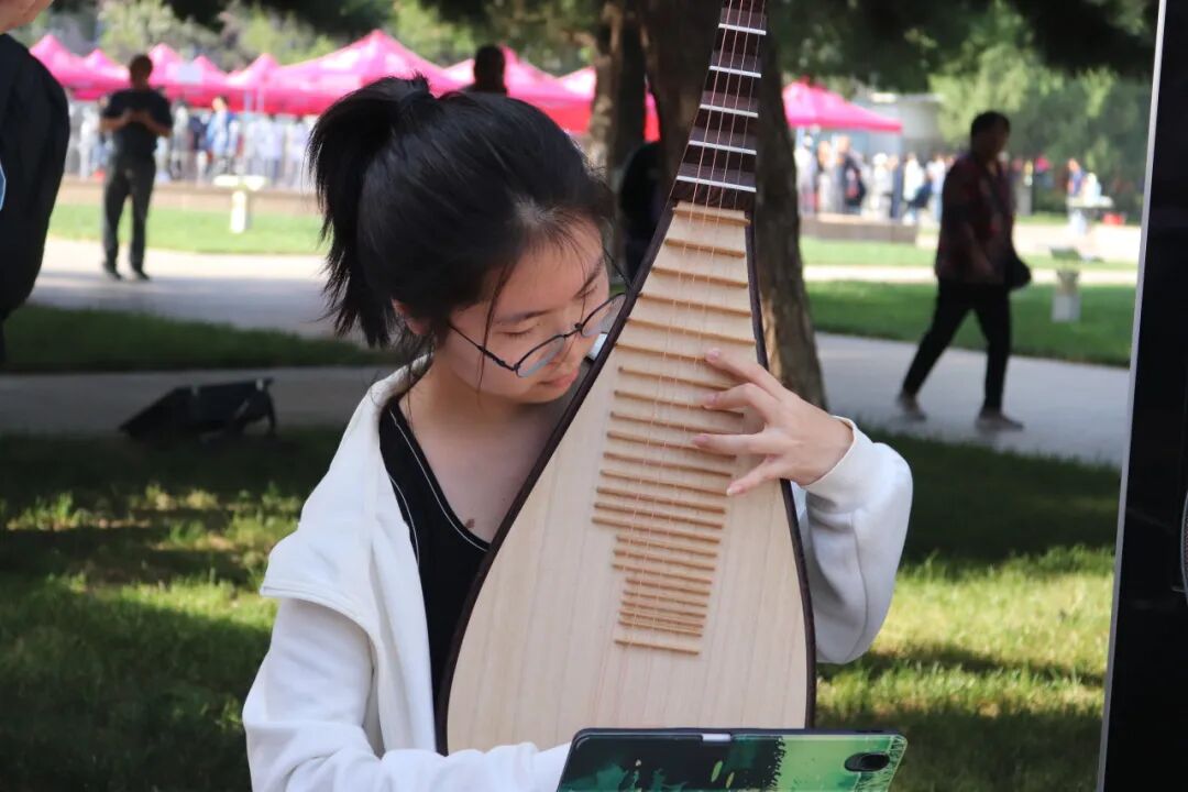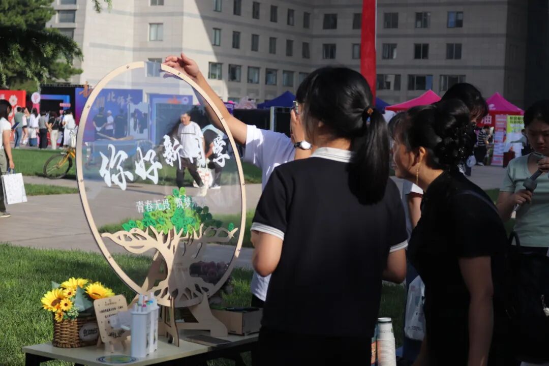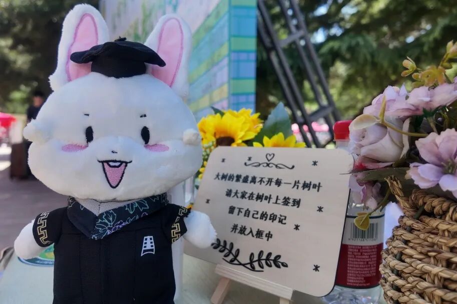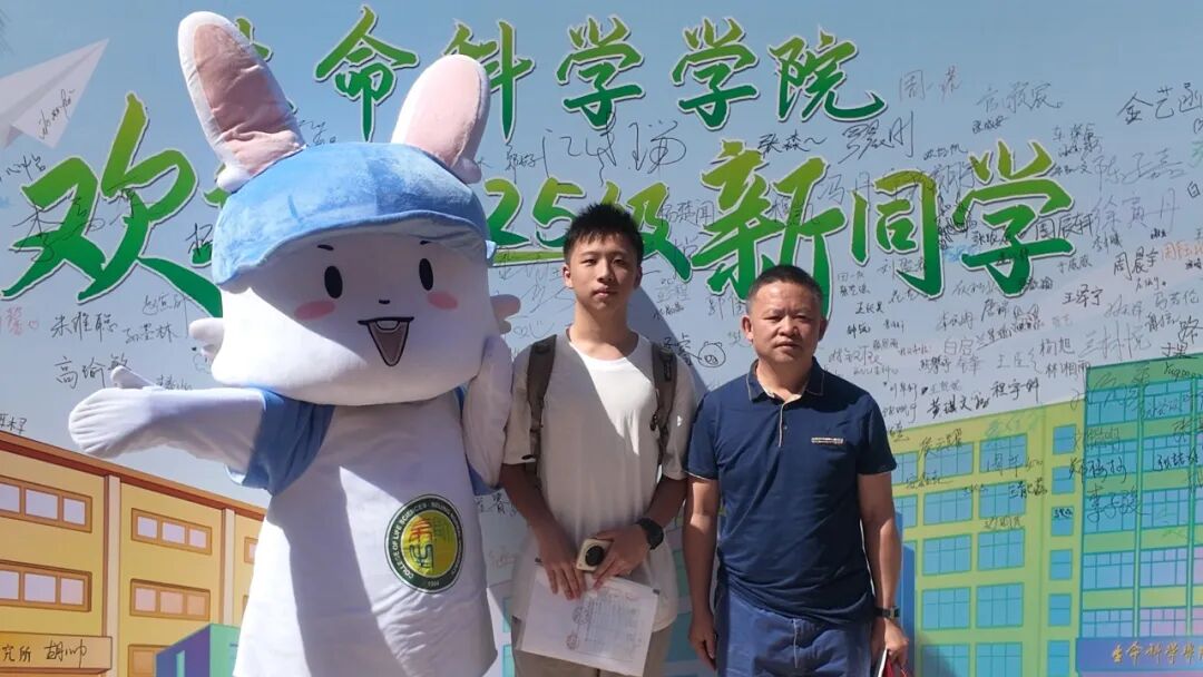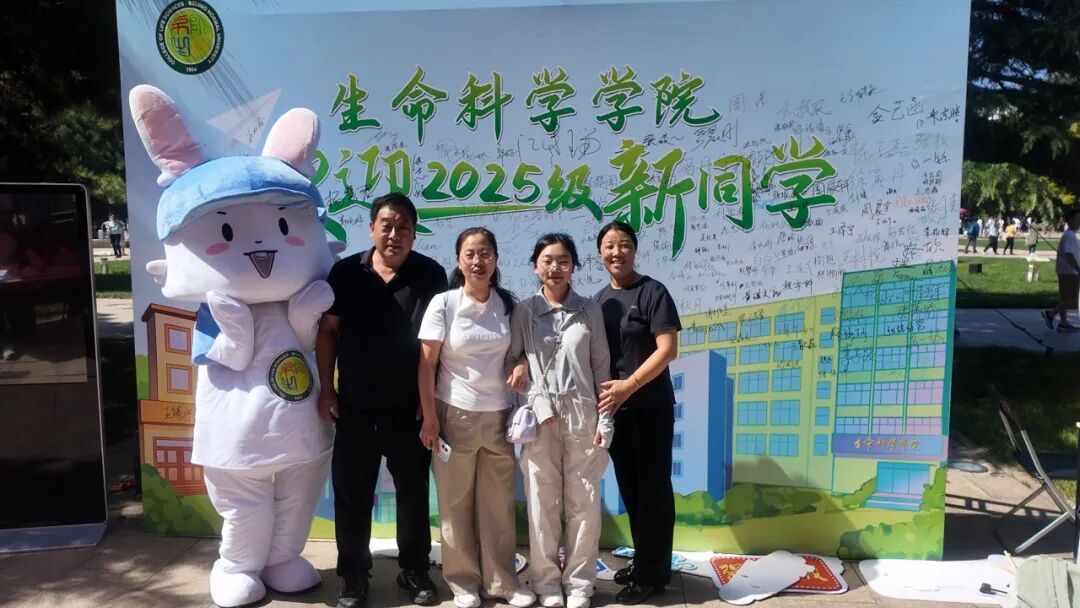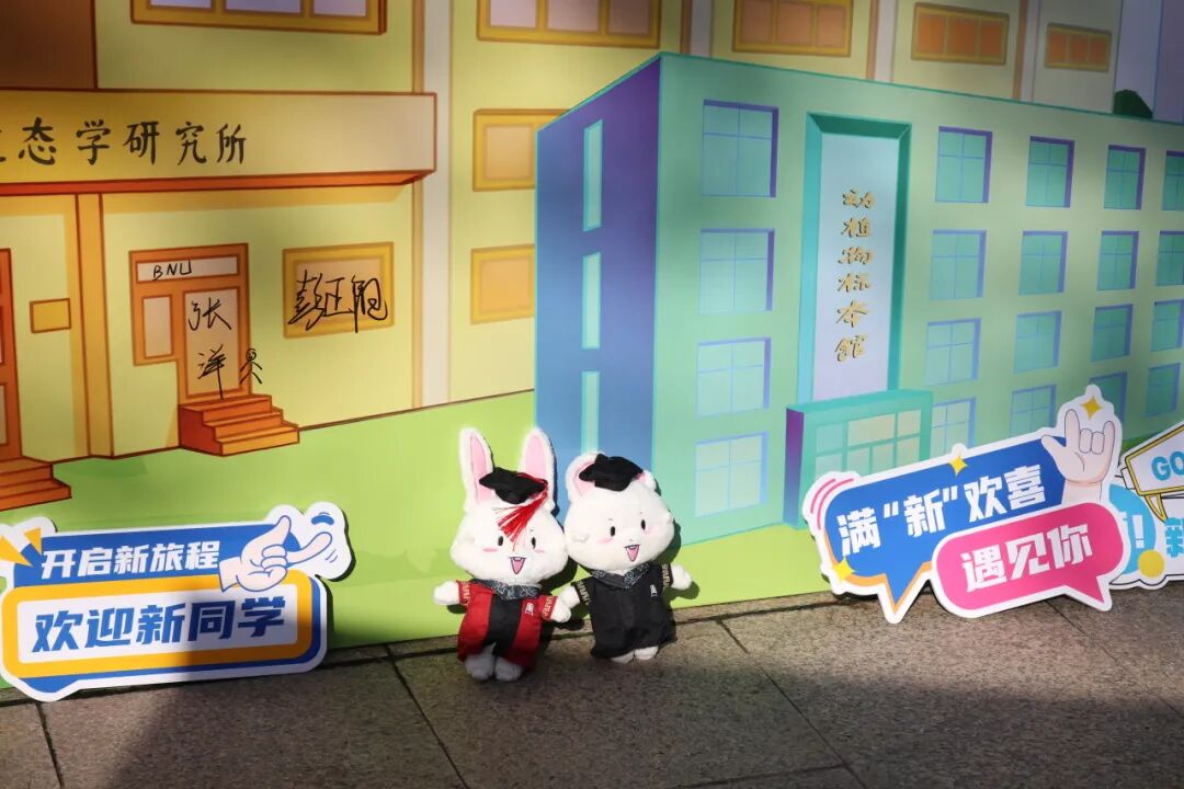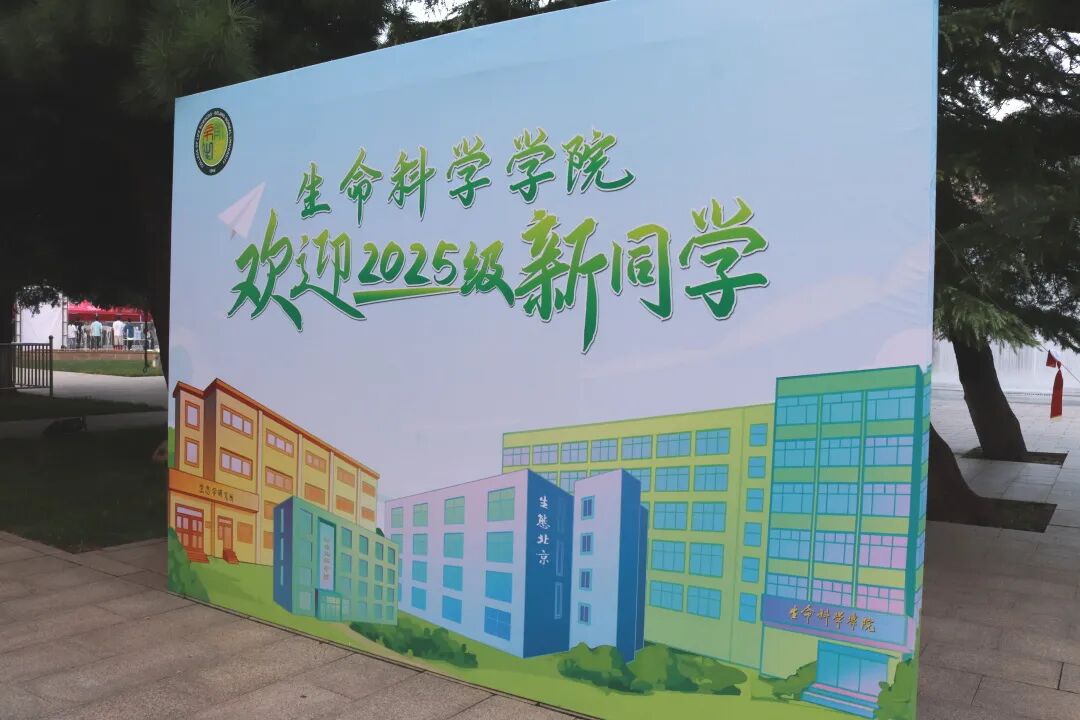 京师广场的迎新接待站早已由学院精心布置。转轴拨弦琵琶语,似引新雏启鹏程。婉转悠扬的琵琶声中,新生们与家长、老师们在宣传展板前合影留念,镜头忠实地记录下他们在人生重要时刻留下的明媚微笑。欢迎展板旁还有一颗“京师生命树”,树上的每一片叶子都带有新生们的亲笔签名,寓意对新生加入生科大家庭的欢迎。生科院吉祥物“师小兔”也与新生们热情招手,共享开学的喜悦之情。