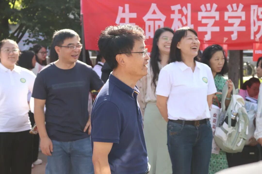 早上八点,学院的领导和老师们来到了迎新接待站。学院党委书记王天明老师、院长窦非老师、副院长兼2025级励耘班班主任董路老师、副院长廖万金老师、副院长席超老师、副院长孙林老师、党委副书记杨晨老师、党委副书记兼2025级强基班班主任商瑜老师、生态系系主任邓文洪老师、2025级本科1班班主任张姗老师、2025级本科2班班主任李雪莹老师、2025级协和医班班主任张笑天老师、2025级理试1班班主任王婷老师、2025级理试2班班主任李旭阳老师以及学工办的各位老师在迎新点与大家亲切交流。