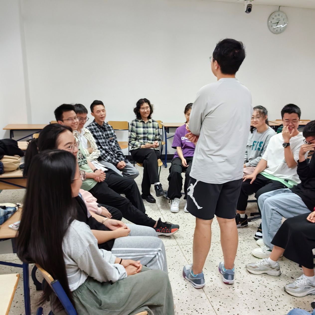 接下来,老师让我们在心里默念一个数字,然后用非言语的方式和其他人交流、排序,最后站成一个数字从小到大排列的圈。虽然由于地域差异,大家的非言语表示存在不同,但是通过努力,所有同学都成功地找到了属于自己的位置。可见,虽然我们来自五湖四海,有着不同的文化底蕴,但是我们可以通过各种方式去交流、包容、接纳不同的文化,拉近彼此的距离。