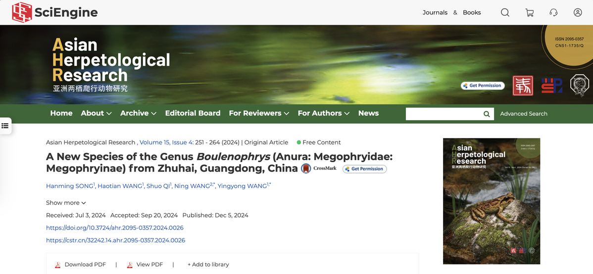《亚洲两栖爬行动物研究》网站截图