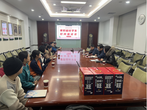 会议开始,殷实老师先对留校学生代表进行了亲切的问候。四位老师了解了留校学生的留校原因及寒假相关安排;认真听取了同学们在留校期间学习,科研,生活等方方面面的基本情况,并与同学们进行了亲切交流。