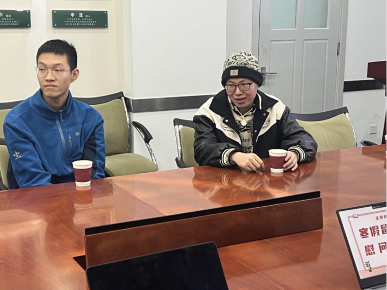 由于假期校园内人员较少,窦非老师悉心叮嘱留校的同学们在留校期间要保持“安全责任无小事”的态度,保证自身的生命安全健康,劳逸结合,把时间安排好,晚上不要熬夜,安排好自己的作息时间。王天明老师同时提醒大家也要合理安排规划自己的学习、科研和生活节奏,适当运动,定期与父母家人和朋友沟通联络,保持心情舒畅,有问题及时与老师沟通联系,保证留校生活的平安顺利进行,过一个有意义的春节!