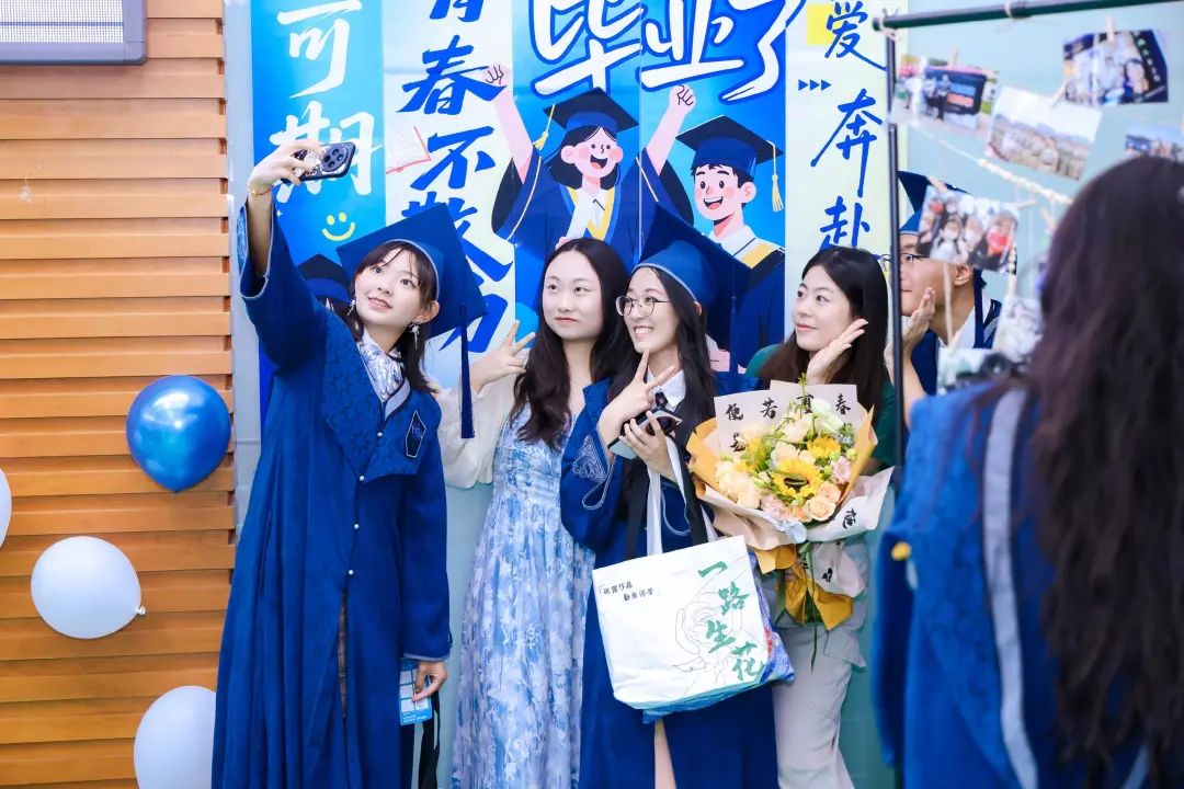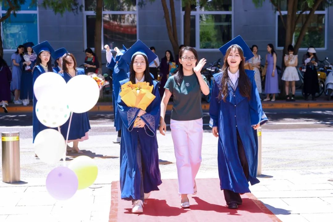 盛夏时节,尽管骄阳似火,却丝毫未能减退毕业生们内心的澎湃热情。伴随着悠扬的音乐,毕业生们陆续邀请自己的导师、同窗和挚友携手走过红毯,在毕业签名墙上签下姓名。毕业生们拿着鲜花、合影板在签名墙前留下了一张张洋溢着青春笑靥的纪念照片。