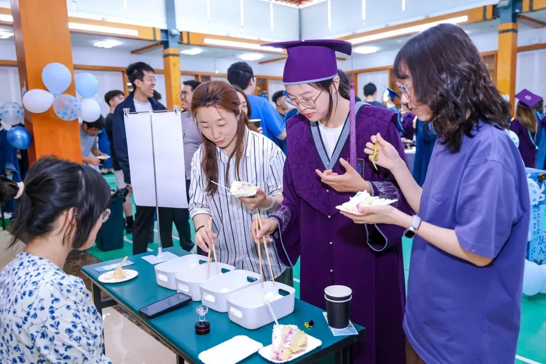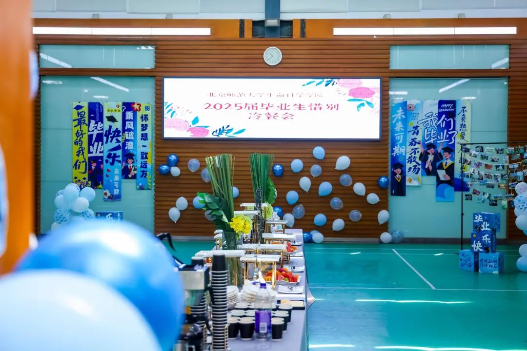 在红毯仪式圆满落幕后,学院在多功能厅为毕业生们举办了一场温馨的惜别冷餐会。会场经过精心布置,处处洋溢着浓浓的毕业氛围。学院特别准备了各式精致糕点、清爽软饮、水果等轻食,让同学们在轻松愉悦的氛围中畅叙同窗情谊,共话美好未来。