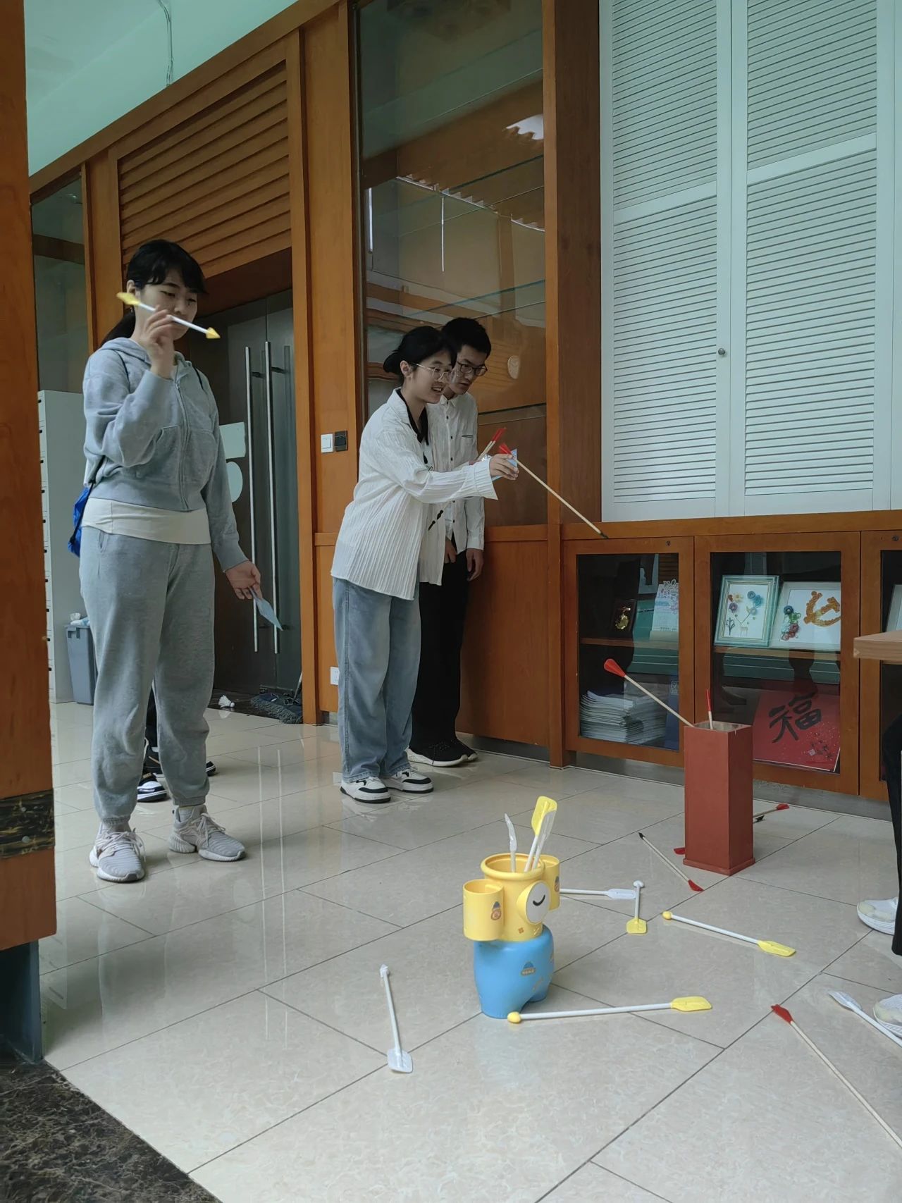投壶,这一古老而有趣的传统游戏,在本次运动会中焕发了新的生机。参赛者们纷纷展现出了自己精准的投掷技巧,每一次成功的投壶都赢得了现场观众的阵阵掌声。